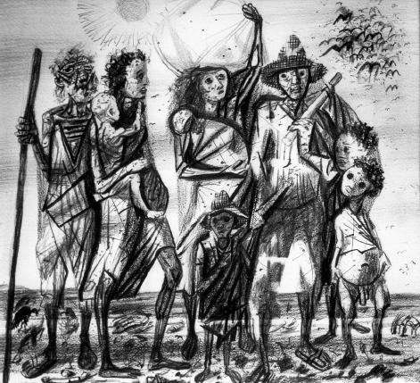 Fonte: Disponível em: <http://www.portinari.org.br/#/acervo/obra/5927>. Acesso em: 22 ago. 2016.Considerando-se o tema apresentado na tela “Retirantes”, de Portinari, é CORRETO apenas o que se afirma em: