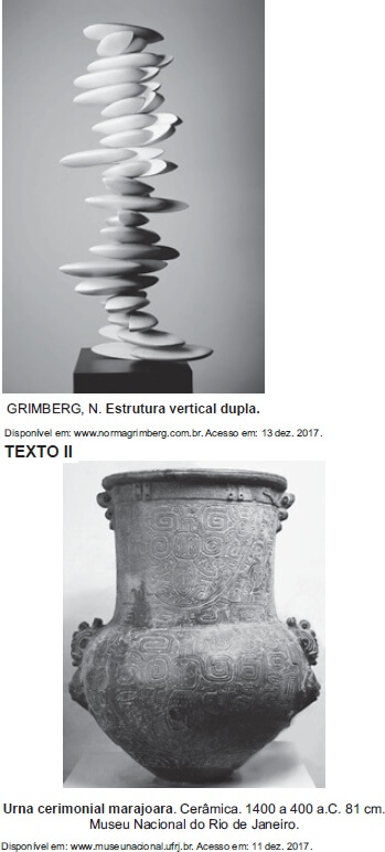 As duas imagens são produções que têm a cerâmica como matéria-prima. A obra Estrutura vertical dupla se distingue da urna funerária marajoara ao