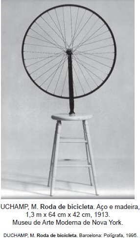 TEXTO IIAo ser questionado sobre seu processo de criação de ready-mades, Marcel Duchamp afirmou:— Isto dependia do objeto; em geral, era preciso tomar cuidado com o seu look. E muito difícil escolher um objeto porque depois de quinze dias você começa a gostar dele ou a detestá-lo. E preciso chegar a qualquer coisa com uma indiferença tal que você não tenha nenhuma emoção estética. A escolha do ready-made é sempre baseada na indiferença visual e, ao mesmo tempo, numa ausência total de bom ou mau gosto.CABANNE, P. Marcel Duchamp: engenheiro do tempo perdido. São Paulo: Perspectiva, 1987 (adaptado).Relacionando o texto e a imagem da obra, entende-se que o artista Marcel Duchamp, ao criar os ready-mades, inaugurou um modo de fazer arte que consiste em