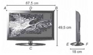 A embalagem deve deixar uma folga de 5 cm em cada uma das dimensões. Esta folga será utilizada para proteger a televisão com isopor. O papelão utilizado na confecção das caixas possui uma espessura de 0,5 cm.A empresa possui 5 protótipos de caixa de papelão, na forma de um paralelepípedo reto-retângulo, cujas medidas externas: comprimento, altura e largura, em centímetro, são respectivamente iguais a:Caixa 1: 68,0 x 50,0 x 18,5